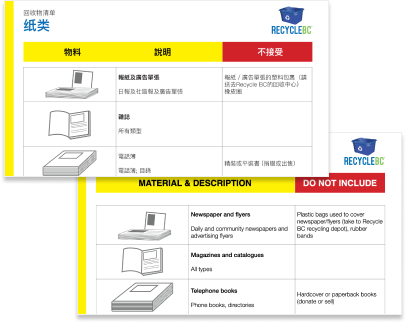 - Plastic bags used to cover newspapers/flyers (recycle at a Recycle BC depot)