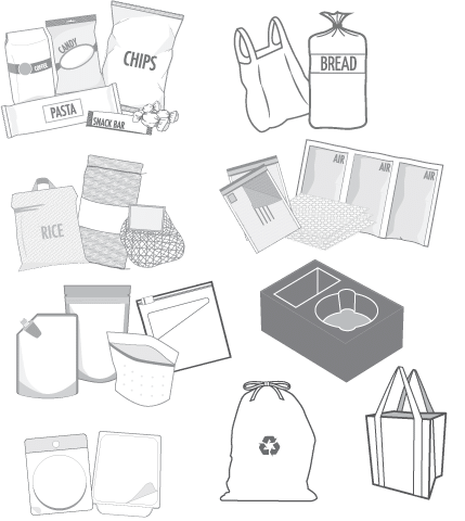 - Non-food protective packaging (e.g. all-plastic shipping envelopes, air packets, etc.)