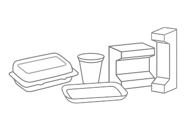 - Foam clamshells, cups and bowls for take-out food