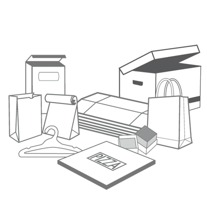 - Cardboard and boxboard boxes used for cereal, shoes, tissues, pizza, frozen entrees, desserts, detergent, etc.